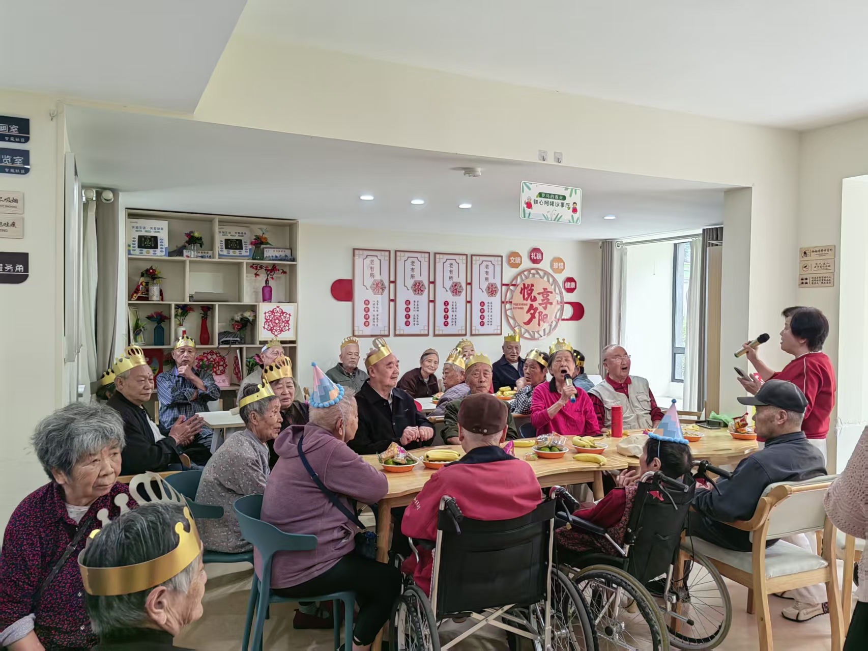 在歡樂的氛圍中,生日會迎來高潮。工作人員緩緩推出生日蛋糕,點亮蠟燭,全體人員共同唱響生日歌。老人們在歌聲中默默許愿,隨后一同吹滅蠟燭,分享甜蜜的蛋糕,每一口都飽含著對生活的熱愛與對彼此的美好祝福,整個現(xiàn)場充滿了家的溫暖。